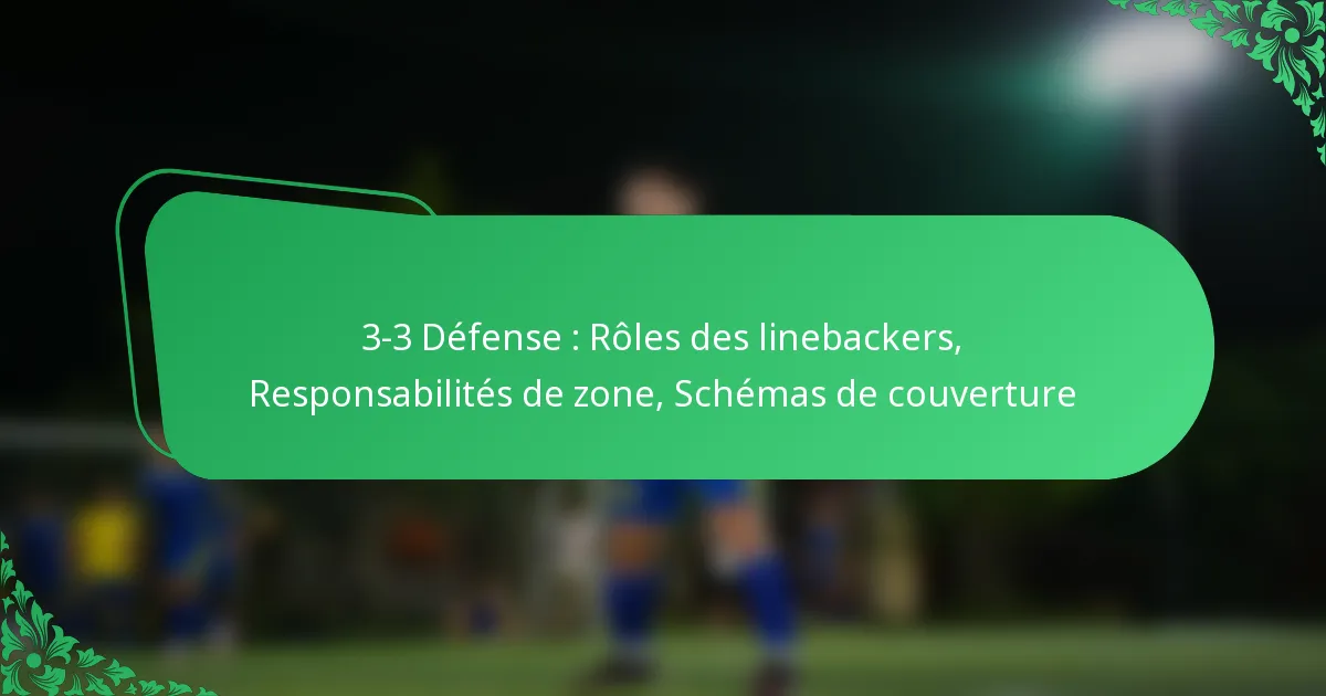 La défense 3-3 est une formation stratégique de football qui comprend trois joueurs de ligne défensive et trois linebackers, conçue pour s’adapter aux jeux de course et de passe. Les linebackers dans ce schéma sont essentiels, car ils gèrent les responsabilités de couverture des espaces et les schémas de couverture, garantissant une réponse défensive robuste face à diverses tactiques offensives.