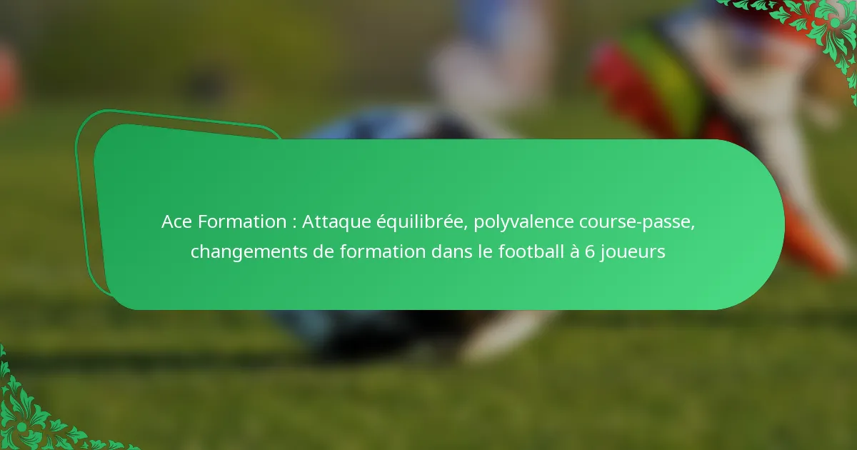 La formation Ace est un alignement stratégique dans le football à 6 joueurs conçu pour créer une attaque équilibrée et améliorer la polyvalence entre course et passe. En intégrant un ensemble diversifié de joueurs offensifs, cette formation permet aux équipes d’adapter leurs stratégies en temps réel, maximisant ainsi leur efficacité contre diverses configurations défensives.