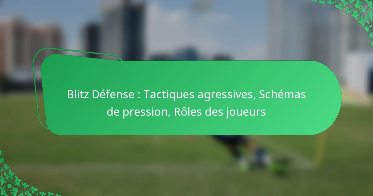 Les schémas de pression dans la défense blitz sont conçus pour créer des tactiques agressives qui perturbent l’attaque adverse en appliquant une pression intense sur le quarterback. Ces schémas utilisent divers rôles de joueurs et formations pour maximiser l’efficacité et créer des opportunités de turnovers ou de jeux négatifs.