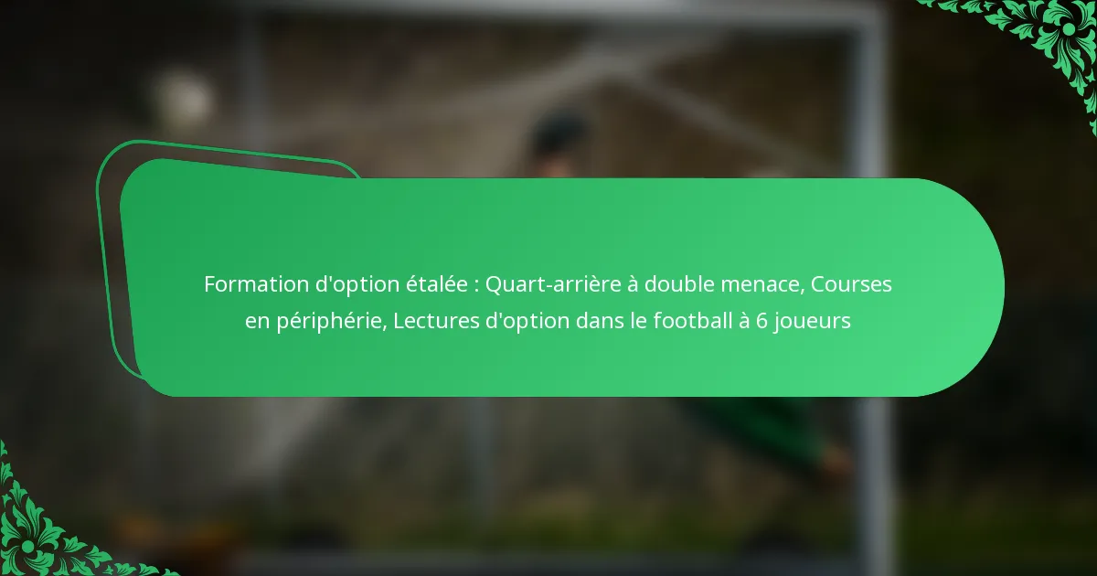 La formation d’option étalée combine des éléments à la fois de l’attaque étalée et du jeu d’options. Elle présente généralement un quarterback capable de courir ou de passer, créant ainsi plusieurs menaces pour la défense. Les composants clés incluent un alignement large des receveurs, un running back positionné pour bloquer ou courir, et un quarterback qui lit la défense pour décider s’il doit remettre le ballon ou le garder.